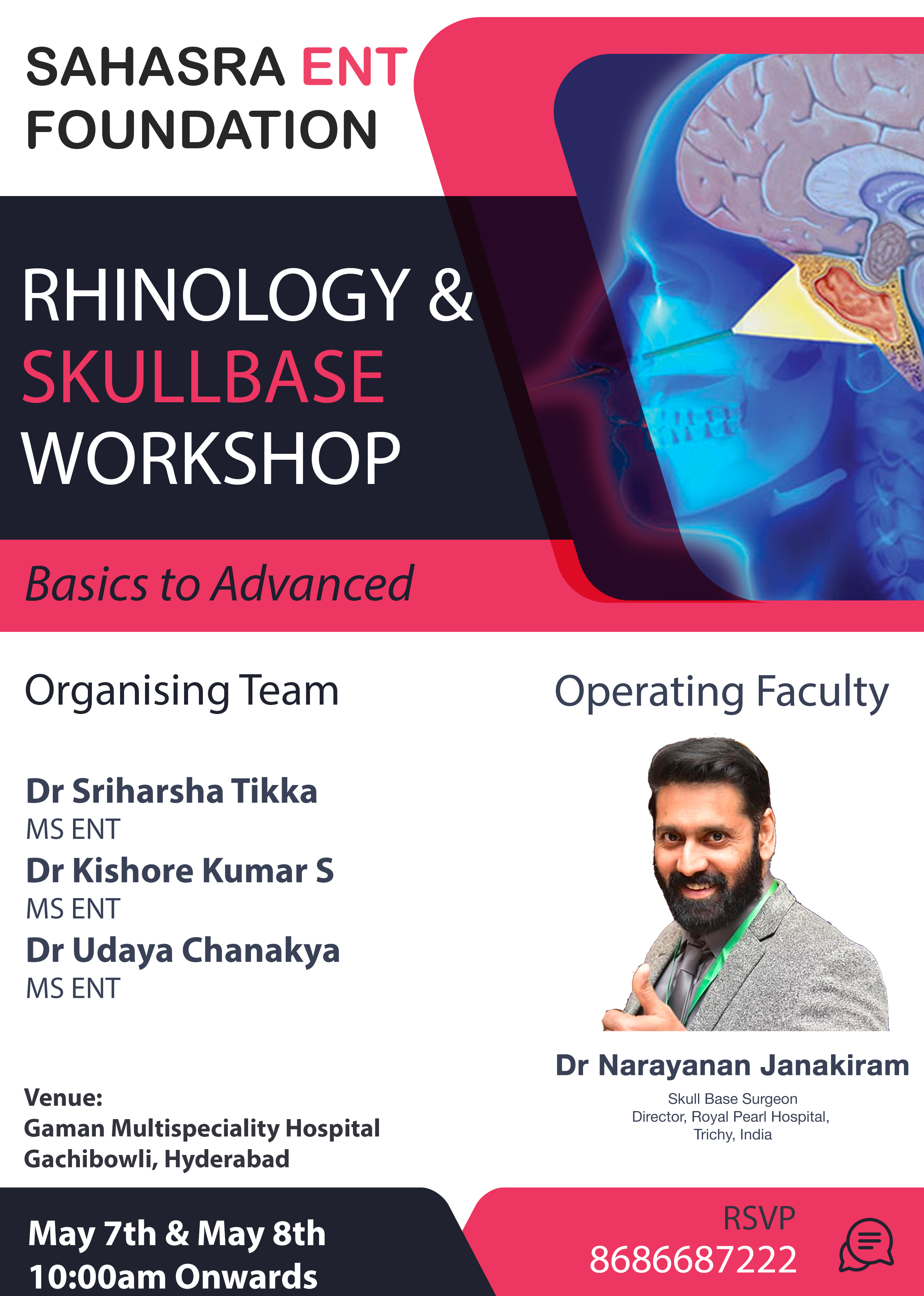 Hyderabad SkullBase Workshop 2022 Registration Charges Early Bird Offer (Before May 5th) Book Appointment Consultants5000PGs1500 Spot Registration Book Appointment Consultants7000Residents5000